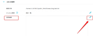 サイト管理⇒サイト設定⇒応用設定⇒直接編集の鉛筆マークをクリック
